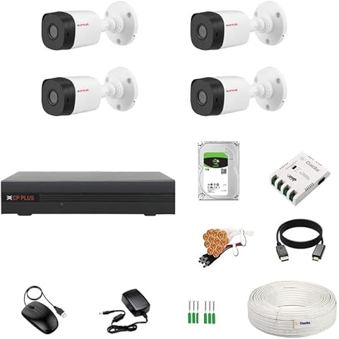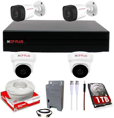CP PLUS 2.4 MP COMPLETE SET WITH 4 CHANNEL DVR, 2 OUTDOOR AND 2 INDOOR CCTV CAMERAS, 1 TB HARD DRIVE ( Old and Used ) , 4 Channel SMPS, Cable roll, USEWELL HDMI and BNC DC